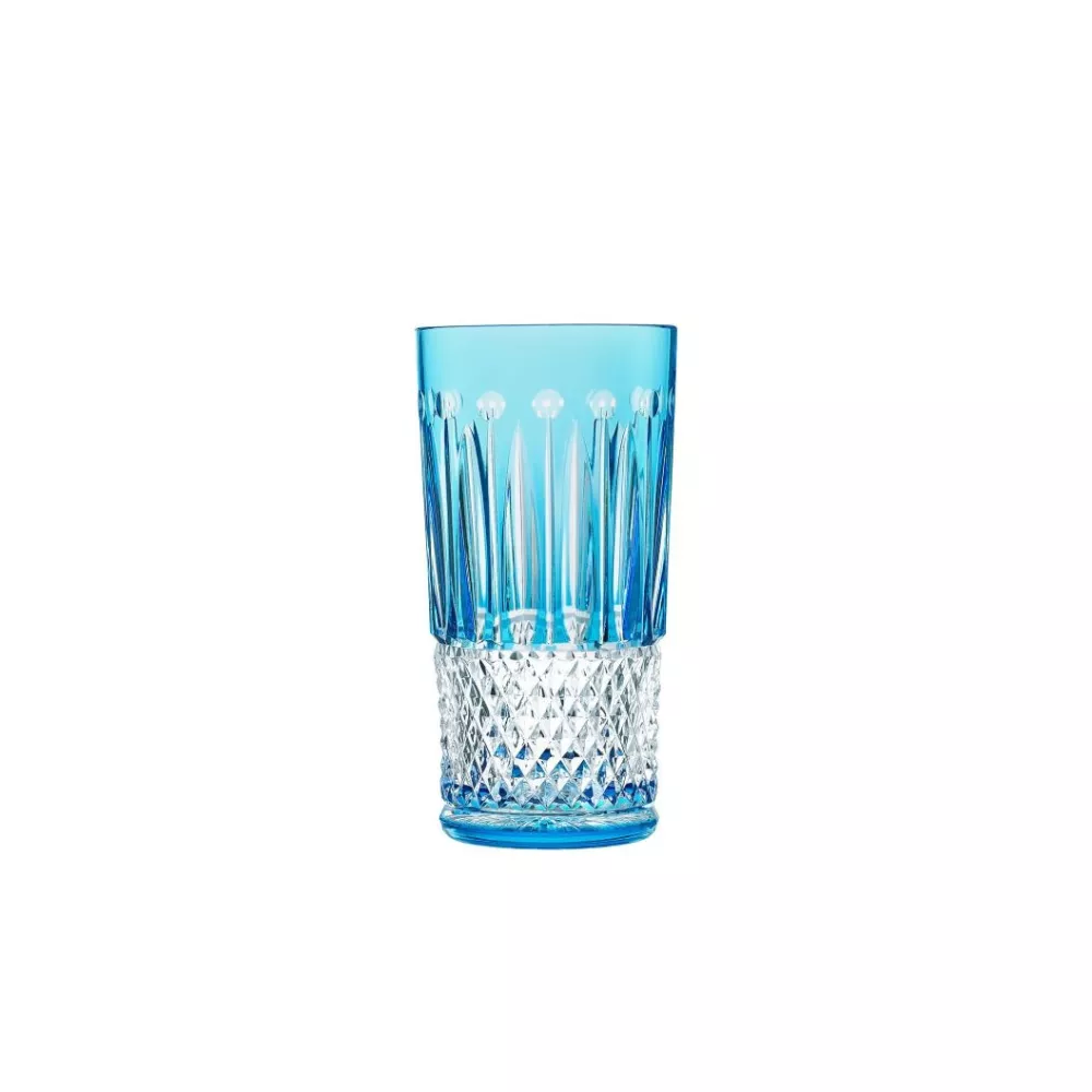 The Tommy collection, a classic of the Saint-Louis production since 1928, is striking for its elegance and richness. For its realization, the maison uses three different cutting techniques: faceted, ball and diamond. The fine workmanship of the crystal gives splendor to the table, making it appreciate its magic. Tommy Sky-Blue Highball Dimensions: Height 140 mm, Diameter 74 mm, Volume 34 cl Material: Crystal glass Product Code: 12426226