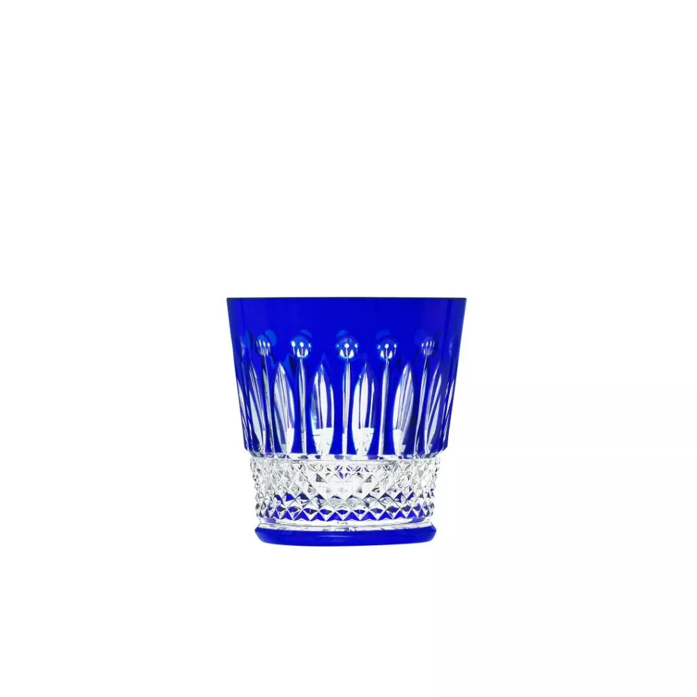 The Tommy collection, a classic of the Saint-Louis production since 1928, is striking for its elegance and richness. For its realization, the maison uses three different cutting techniques: faceted, ball and diamond. The fine workmanship of the crystal gives splendor to the table, making it appreciate its magic. Tommy Medium Dark Blue Old Fashion N.°3 Dimensions: Height 90 mm, Diameter 87 mm, Volume 25 cl Material: Crystal glass Product Code: 12425323