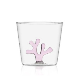 CORAL REEF GLASS, CORAL REEF - ICHENDORF MILANO Coral Reef, designed by designer Alessandra Baldereschi for Ichendorf, is a collection of glasses inspired by the marine world, creating a captivating and refined set. The coral tumbler, perfect for serving water and other beverages, features a small colorful coral branch positioned at the bottom of the glass. Material: Borosilicate Glass Size: H 8 x D 8.5 cm Reference: 09352048