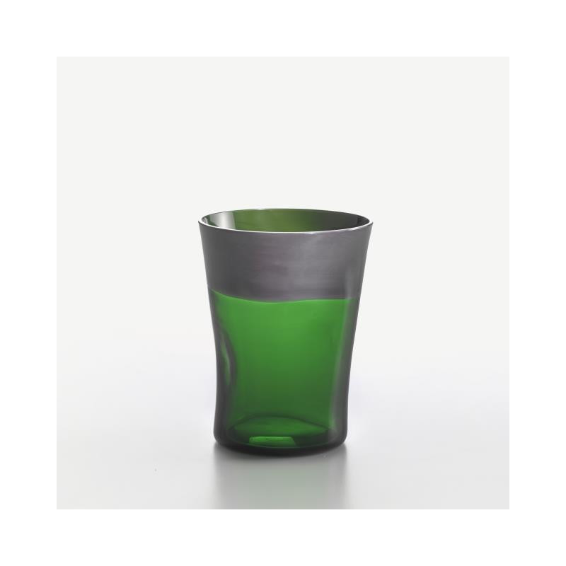 Green and grey glass in Murano glass, handmade and with the aid of molds, inside which the masters NasonMoretti blow the molten material, a mixture created following some secret recipes that go back to the foundation of the factory. A technique developed in 1951 that required a squashing of the glass, which adapts to the hand and has distinctive ergonomics, makes it even more original. For this reason, every Dandy is a unique piece. DIMENSIONS: H 11 cm, diameter 9 cm