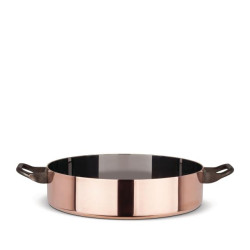 Low two-handled casserole made of bilaminate of thick copper plate, ensuring perfect heat conduction, encased in a thin layer of stainless steel that ensures maximum hygiene and facilitates cleaning. Height: 6 cm Diameter: 24 cm Capacity: 270 cl Code: 90102/24 *Last item left, displayed in the shop"