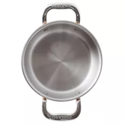 CASSEROLE WITH 2 HANDLES, 28 CM, S15600 COPPER 3PLY 15609-28 - PADERNO The products from the Paderno 15600 series are made with a three-layer system: an inner layer of satin-finished stainless steel sheet, an intermediate layer of aluminum, and an outer layer of polished copper. This design ensures even heat distribution during cooking. The pans have a thickness of 2 mm, and the handle is made of stainless steel with stainless steel rivets. They are suitable for use on all types of stoves except induction and can also be used in the oven. However, they are not suitable for dishwasher use. Brand: Paderno Collection: 15600 Series Material: Copper, Aluminum, Stainless Steel Number of pieces in the set: 1 Article number: 15609-28 Year of introduction: 2023 Oven-safe: True