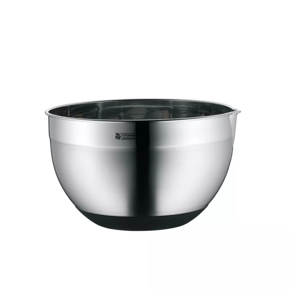 KITCHEN BOWL 22 CM, WITH SILICONE BASE, 06.4667.6030 - WMF From mixing ingredients and sauces to marinating meat, fish, or vegetables, the cooking bowl from the WMF Gourmet line is the perfect companion for any occasion. Its bulbous design is ideal for preparing recipes or kneading dough, as well as easily inserting mixing tools. At the same time, its non-slip silicone base ensures that the bowl remains firmly in place. Dishwasher safe Capacity: 4100 ml