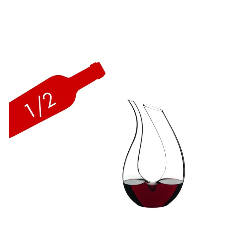 DECANTER, MINI AMADEO, 1756/14 - RIEDEL The Amadeo decanter was launched in 2006 to celebrate RIEDEL's 250th anniversary. It is named after the Austrian composer Wolfgang Amadeus Mozart, who was also celebrating his 250th birthday that year. This handmade blown glass decanter has the shape of a lyre and pours wine like a dream. The wine easily decants from the wider opening of the vessel and is poured into the glass from the narrower mouth. RIEDEL offers a wide range of elegant blown glass decanters suitable for every lifestyle. A decanter is an essential item for every wine lover, and all RIEDEL decanters are made from refined crystal to give high-quality wines the treatment they deserve. Both aged and young wines can benefit from decanting, whether to remove sediment or to make them smoother and rounder. Handmade, handwash only
