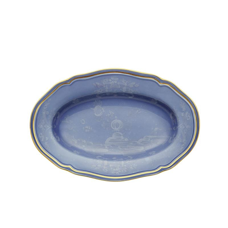 22 CM PICKLE DISH, ORIENTE ITALIANO - RICHARD GINORI With the Oriente Italiano collection, Ginori dared to create a lush and vibrant garden of exotic flowers, an exuberant and unusual party on the meadow. Combining two elements of Italian artistic tradition - the elegance of the Antico Doccia Ginori collection's lines and the delicate charm of the Garofano, a typical floral motif found in Faenza ceramics and inspired by an imaginary oriental garden - with the explosive colors that bring to life the porcelain plates, cups, and all other items in the Ginori Oriente Italiano collection. Please note that objects in this gold-threaded collection are not suitable for use in the microwave or dishwasher only with delicate cycle. Dimensions: 22 cm Material: Porcelain Hand decorated Disconver the collection: Oriente Italiano | Ginori 1735