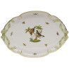 Rothschild Birds, one of the Best Known Herend pattern, takes its name from the important baronial Rothschild family. The RO main elements are two Bird with a Golden Necklace (there are twelve variants of the couple of birds). This pattern is ispired to a 19th century tale about Baroness Rothschild, who lost her pearl necklace in the garden of her viennese residence. Several days later it was found by her gardener, who saw some birds playing with it in a tree. Tet a Tet Tray with ribbon 40 x 28 cm Material: fine china with gold decorations Code: 400 Hand wash recommended. Never microwave an item with gold or platinum trim.