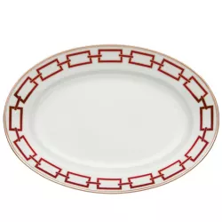 40 CM OVAL LARGE TRAY, CATENE IMPERO - RICHARD GINORI Catene (Chains) is a collection of tableware products, including items such as cups, plates, tea and coffee sets, along with home decorations. This collection is available in four enchanting color variants: Black, Emerald, Sapphire, and Scarlet. The beautiful designs that characterize Chains have been inherited from the renowned Gio Ponti, who was the art director during the first half of the last century for Richard Ginori. The historical shape of this collection is Empire, which harmoniously embraces the sophisticated aesthetics of Chains. To add an extra shine and touch of refinement, Ginori has applied a delicate pure gold finish that embellishes plates, cups, vases, and all the exquisite porcelain pieces in the collection. Not suitable for microwave use Dishwasher safe, only with delicate cycles Shape: Empire Material: Porcelain Made in Italy DISCOVER THE COLLECTION: Catene Impero Ginori