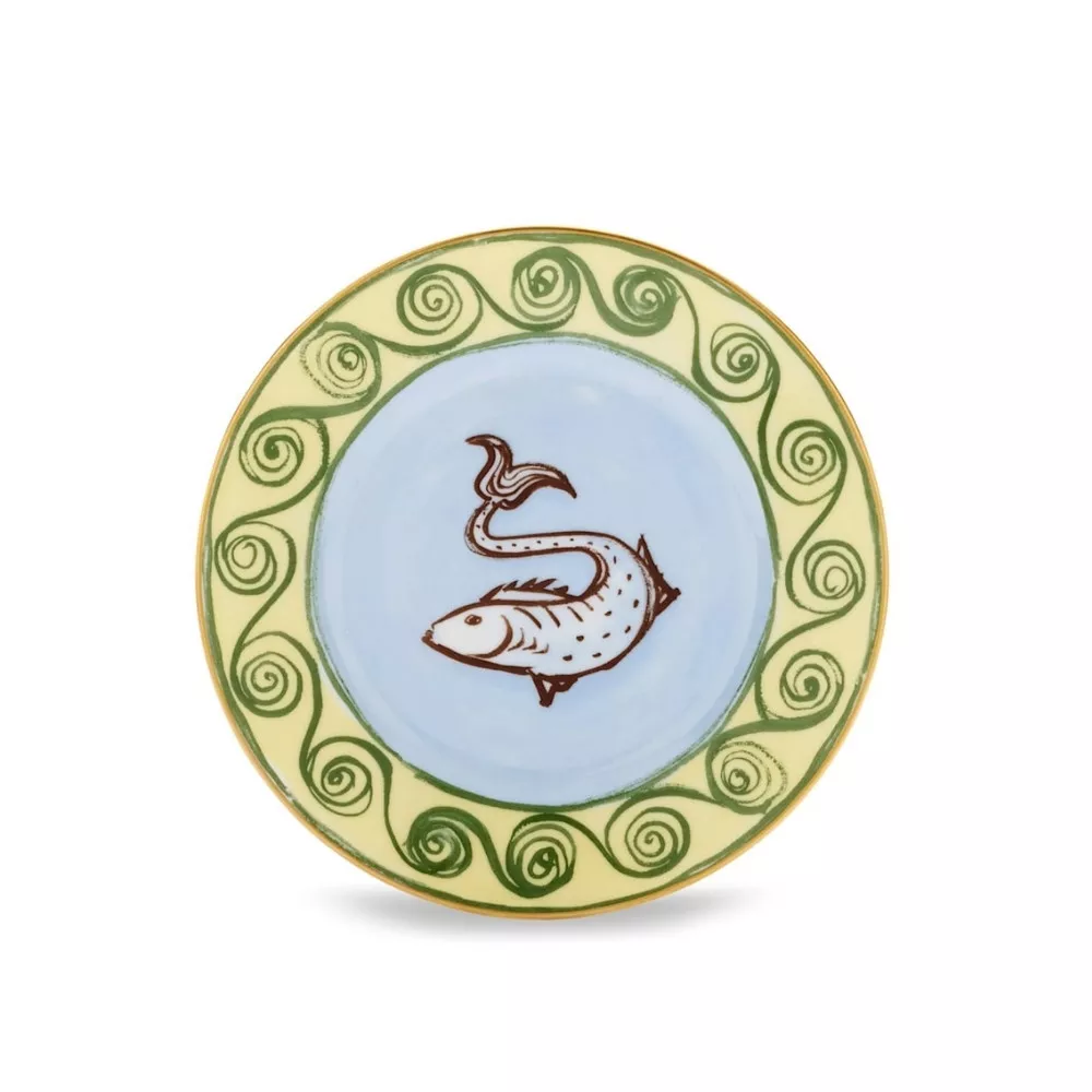 This refined porcelain bread plate from the Il Viaggio di Nettuno collection is the ideal detail to elevate any table setting. Use it for savory bites, sauces, or small desserts. Inspired by ancient Greek ceramics and Mediterranean tones, Luke Edward Hall reimagines classical myth in a modern and delicate way, turning each plate into a contemporary porcelain artwork.