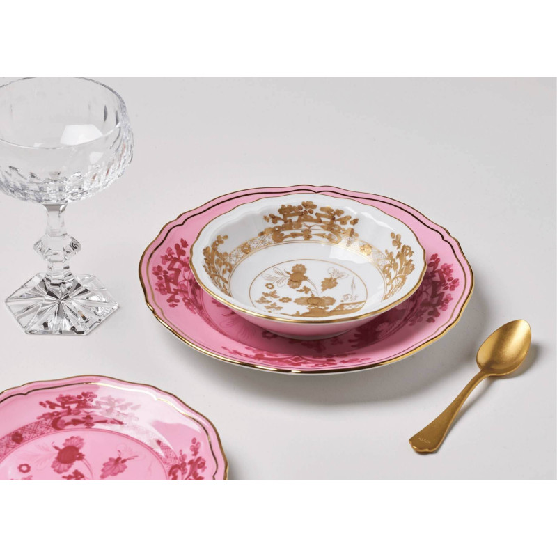 17 CM BREAD PLATE, ORIENTE ITALIANO - RICHARD GINORI With the Oriente Italiano collection, Ginori dared to create a lush and vibrant garden of exotic flowers, an exuberant and unusual party on the meadow. Combining two elements of Italian artistic tradition - the elegance of the Antico Doccia Ginori collection's lines and the delicate charm of the Garofano, a typical floral motif found in Faenza ceramics and inspired by an imaginary oriental garden - with the explosive colors that bring to life the porcelain plates, cups, and all other items in the Ginori Oriente Italiano collection. Please note that objects in this gold-threaded collection are not suitable for use in the microwave or dishwasher only with delicate cycle. Dimensions: 17 cm Material: Porcelain Hand decorated Disconver the collection: Oriente Italiano | Ginori 1735