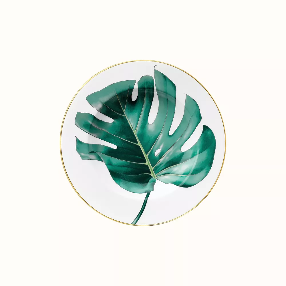 An homage to the foliage that protects the earth, to the colors that burst forth in song. To the power of flora, its folly, and its leaves which rustle a single word, Passifolia. Soup plate in Limoges porcelain Decorated using chromolithography Made in France Diameter: 22,5 cm For all Hermès products that are not available at the time of purchase, please consider a delivery time of 6 to over 12 months