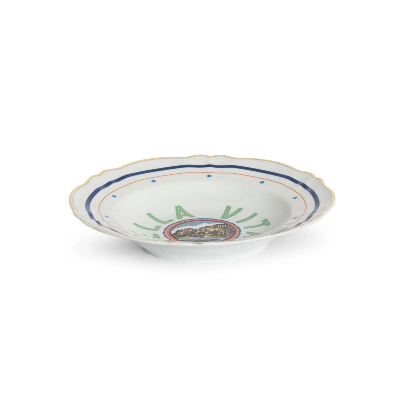 From the graphics created by Sam Baron comes "Un Buon Ricordo", a collection that celebrates Italy and its refined lifestyle, recognized worldwide. Monuments, landscapes, and symbols typical of the Belpaese illustrate and characterize this new, iconic series of plates. Porcelain plate with gold rim decal Dishwasher safe, up to 250 washes Not suitable for microwave use Material: Porcelain Sku: BEL02044 DISCOVER THE COLLECTION: Un Buon Ricordo, Bitossi Home
