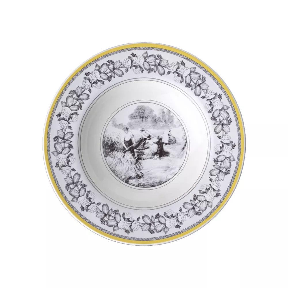 24 CM SOUP PLATE, AUDUN FERME 10-1067-2700 - VILLEROY & BOCH The Audun collection features exquisite decorations inspired by copper engravings depicting detailed landscapes, along with delicate floral designs in elegant shades of yellow and gray. By using Premium Porcelain, you can create a table with a classic and rustic charm. The Audun placeholder plate, with its timeless design, adds a special touch to every table and can also be used as a plate for cakes and pies. Experience the enjoyment of dining in style every day. Soup Plate 24 cm Collection: Audun Ferme Material: Premium china Dishwasher safe Microwave safe Code: 1010672700 DISCOVER THE COLLECTION: Audun - Villeroy & Boch