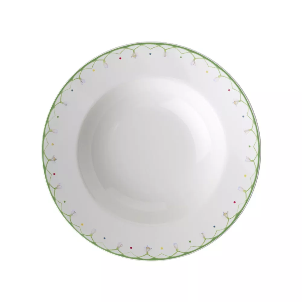 The Colourful Spring collection by Villeroy & Boch, timeless and beautiful, brings the freshness of spring to your table year-round. Delicate snowdrops and colorful butterflies add vibrant touches to every meal, turning it into a feast for the eyes. This soup plate is perfect for serving various culinary delights, combining elegant design with charming decoration. Made from Premium Porcelain, it is dishwasher safe and microwave safe, offering both practicality and style.