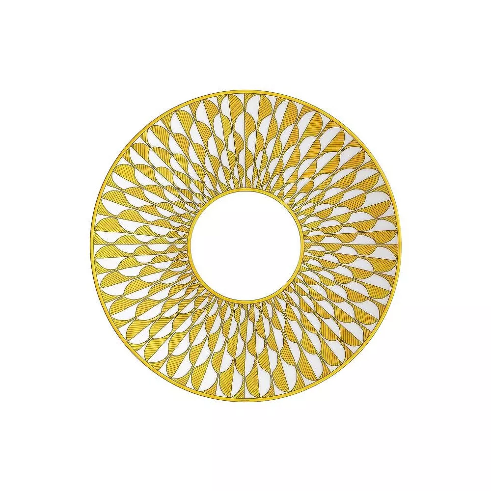 Soleil d'Hermès takes us on a journey to the vibrant summer heat, immersing us in the radiant Mediterranean sun. It captures the moment when the intense sunlight transforms buildings and objects, blurring their edges and infusing them with a soft luminosity. The design embraces natural lines, beautifully accentuating the hues of yellow with delicate gradients that add depth and power to the color palette. Through its intricate contours and delicate strokes, it highlights the fiery intensity of the sun. The collection showcases a playful and artistic approach, aiming to radiate light and express graceful and abstract forms, creating a mesmerizing interplay of rhythms and shapes. Soleil d'Hermès is a celebration of the sweetness of summer and conviviality, adorning the table with a luminous ambiance.