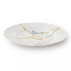 Kintsugi Japanese art assumes contemporary shapes. The delicate porcelaine is glorified and enriched with gold fragments for a tableweare collection made of charming and unexpected compositions. Dinner Plate Design: Marcantonio Material: Porcelain, Gold Size: cm ø 27,5 h.3 Dishwasher safe Discover The Collection: Kintsugi by Seletti