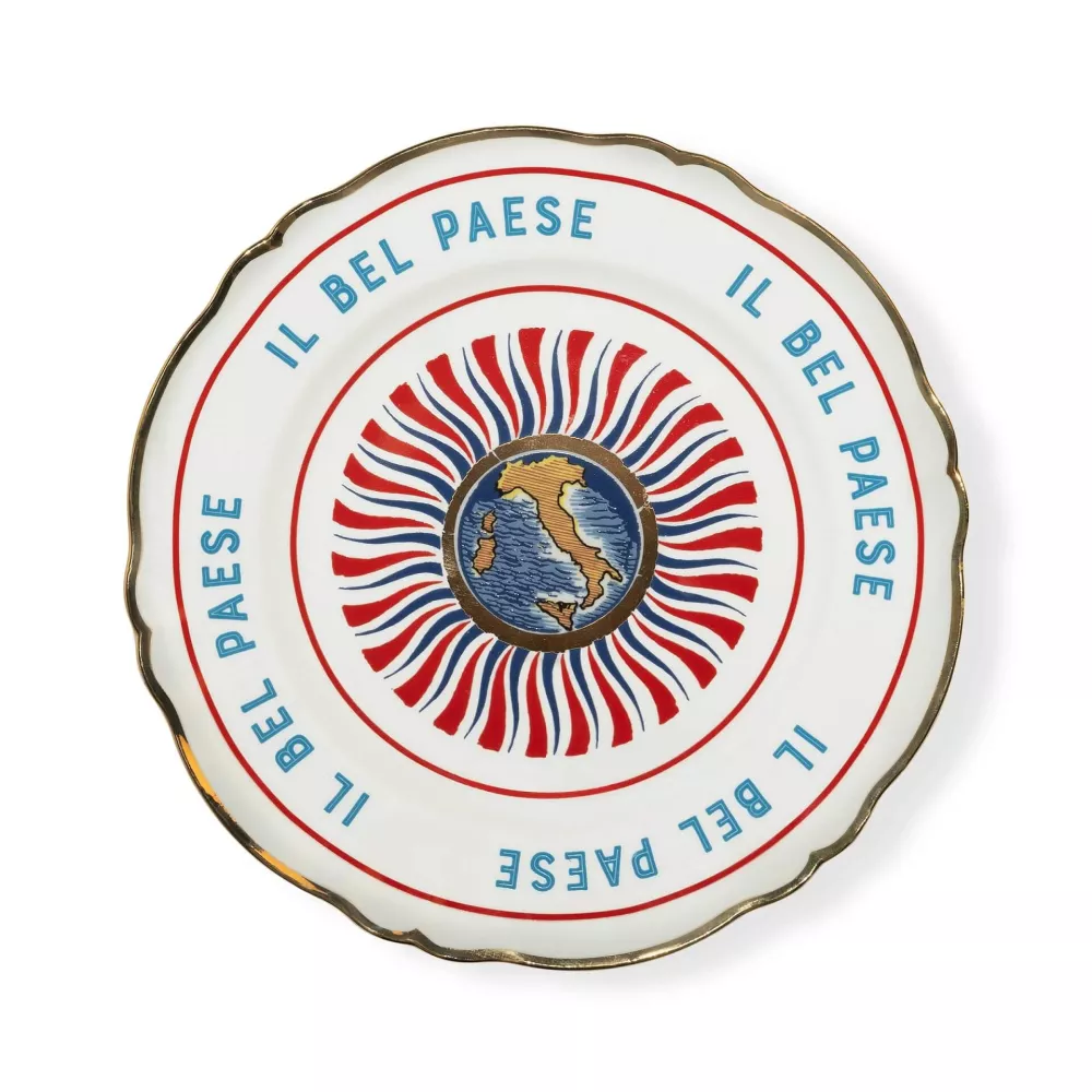 Dinner Plate 26.5 cm, Italia BEL02002 - Bitossi Home From the graphics created by Sam Baron comes "Un Buon Ricordo", a collection that celebrates Italy and its refined lifestyle, recognized worldwide. Monuments, landscapes, and symbols typical of the Belpaese illustrate and characterize this new, iconic series of plates. Porcelain plate with gold rim decal Dishwasher safe, up to 250 washes Not suitable for microwave use Material: Porcelain DISCOVER THE COLLECTION: Un Buon Ricordo, Bitossi Home