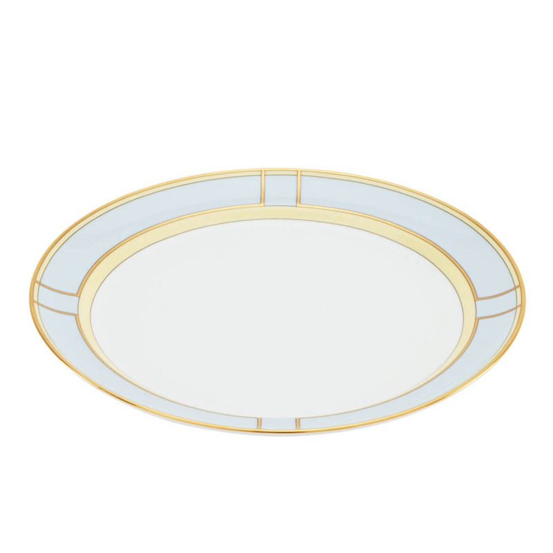 Discover Diva, the collection designed by Richard Ginori that celebrates Italian design with a contemporary twist, revisiting the iconic style of Giovanni Gariboldi. It features four unexpected decorations in pastel shades — Sky Blue, Yellow, Pink, and Green — embellished with delicate golden lines that enhance its minimalist shapes. The versatility and dynamism of this collection adapt perfectly to everyday use, offering innovative and original combinations: the sugar bowl with lid transforms into a small bowl with saucer, while the salad bowl can also function as a soup bowl with the addition of its tray as a lid. The bread plates, perfect for serving small sweets, are the ideal companion for the tea ritual. This collection not only meets everyday needs but also adds a touch of luxury and design to your table, available in various table, tea, and coffee configurations and enriched by a dedicated giftware line. Watch the video:Diva by Ginori Technical specifications: Material: Porcelain. Not suitable for the microwave; dishwasher safe on a gentle cycle (max 50°C) Dimensions: Height 2.8 cm, diameter 27 cm Weight: 683 g Functionality: Stackable product for easy storage