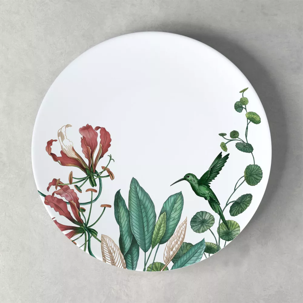 Inspired by the beauty of Avarua, this design interprets the journey of navigator and explorer James Cook, artistically telling the story of his discovery. The dinner plate from the Avarua collection, with its botanical motifs and soft colors, allows you to enjoy your favorite dishes while dreaming of a paradisiacal place like the Cook Islands.