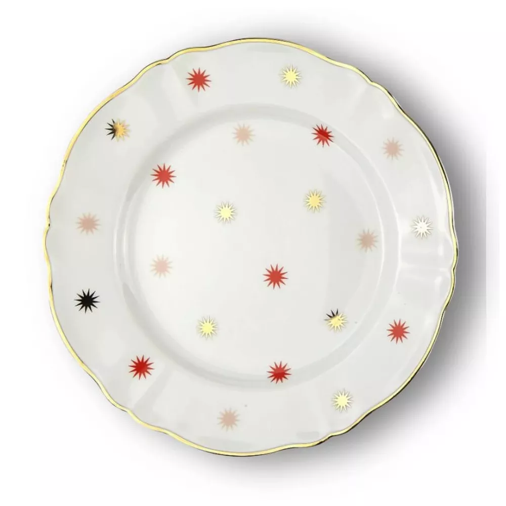 DINNER PLATE 26,5 CM VOLTA GOLD THREAD, ABR 0001 - BITOSSI HOME The Abracadabra line by Bitossi Home is the perfect combination of style and functionality. Each piece is made with high-quality materials and carefully finished to ensure an elegant and long-lasting product. The products in the Abracadabra line are designed to meet every need. The ceramic cups with enchanting decorations and the elegant plates and trays will be perfect for special occasions, both with family and friends. Porcelain plate with gold edge decal Suitable for dishwasher up to 250 washes Not suitable for microwave use Material: Porcelain Code: ABR-0002 Diameter: 26.5 cm Abracadabra, design by La Tigre Discover The Collection: Abracadabra | Bitossi