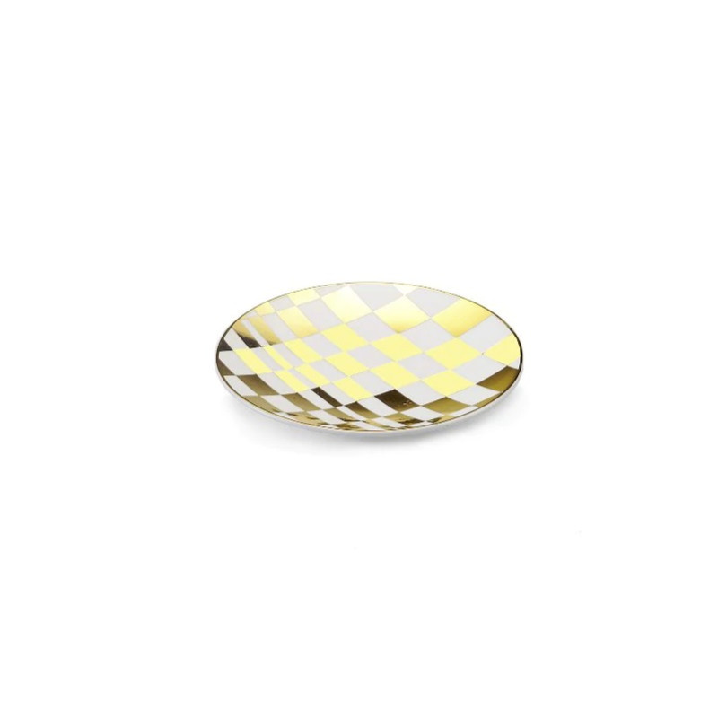 Porcelain plates with gold border decal Suitable for dishwashers Max 250 washes Not suitable for microwaves Material: Porcelain Collection: Abracadabra Cod: ABR0064 Diameter: 12 cm Discover The Collection: Abracadabra | Bitossi