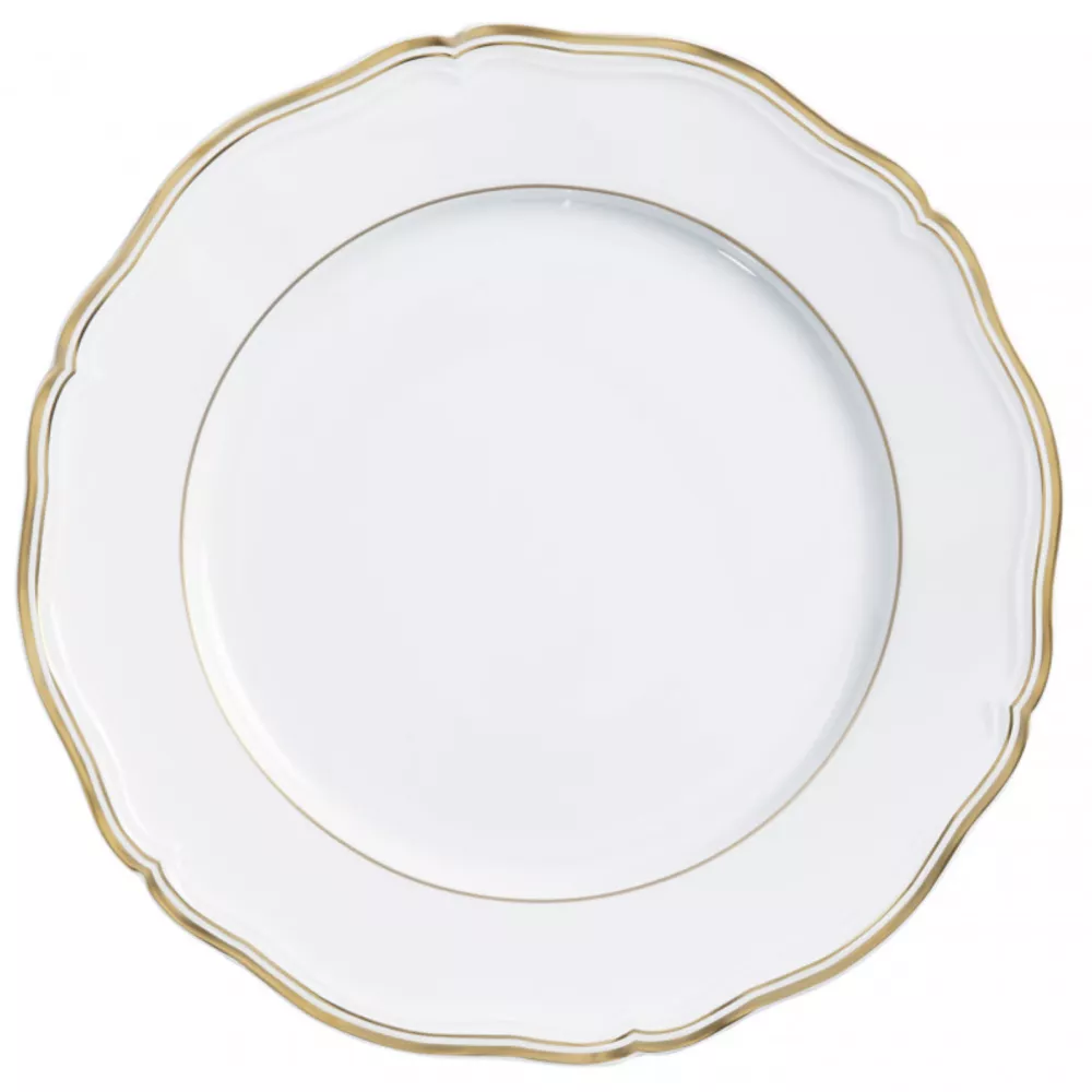 Gold in royalty underlines the festoons of this décor inspired by the Polka collection revisited with shimmering colors. Eight colors bring modernity to this Louis XV décor: Gray Blue, Ivory, Yellow, Black, Orange, Red, Turquoise and Green. Reference: 0864-01-101031 Diameter: 31 cm Material: Porcelain Color: Gold