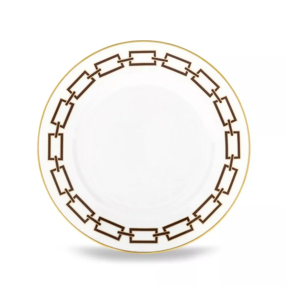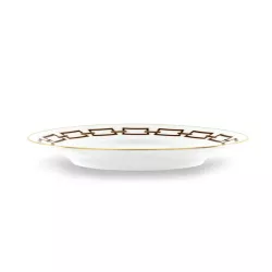 22 CM DESSERT PLATE, IMPERO CATENE - RICHARD GINORI Catene (Chains) is a collection of tableware products, including items such as cups, plates, tea and coffee sets, along with home decorations. This collection is available in four enchanting color variants: Black, Emerald, Sapphire, and Scarlet. The beautiful designs that characterize Chains have been inherited from the renowned Gio Ponti, who was the art director during the first half of the last century for Richard Ginori. The historical shape of this collection is Empire, which harmoniously embraces the sophisticated aesthetics of Chains. To add an extra shine and touch of refinement, Ginori has applied a delicate pure gold finish that embellishes plates, cups, vases, and all the exquisite porcelain pieces in the collection. Not suitable for microwave use Dishwasher safe, only with delicate cycles Shape: Empire Material: Porcelain Made in Italy DISCOVER THE COLLECTION: Catene Impero Ginori