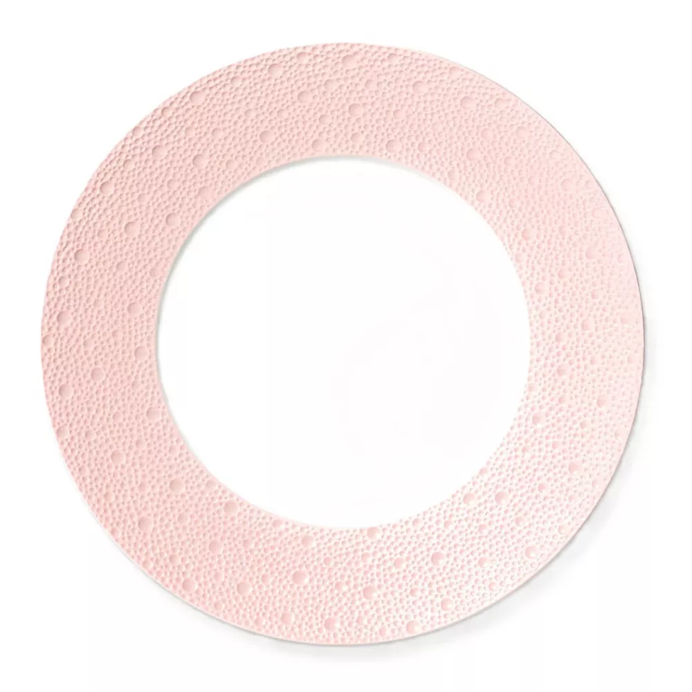 The Ecume Rose de Corée charger plate by Bernardaud epitomizes elegance and sophistication with its delicate pink hue. This shade of pink, ranging from candy to pastel, evokes joy and sweetness, symbolizing childhood and femininity. The soft engraving of the Ecume collection adds a tender touch. It can be used for an all-pink table setting, mixed with Ecume Perle and Ecume White for a gradient effect, or enhanced with gold or platinum accents for a touch of luxury.