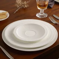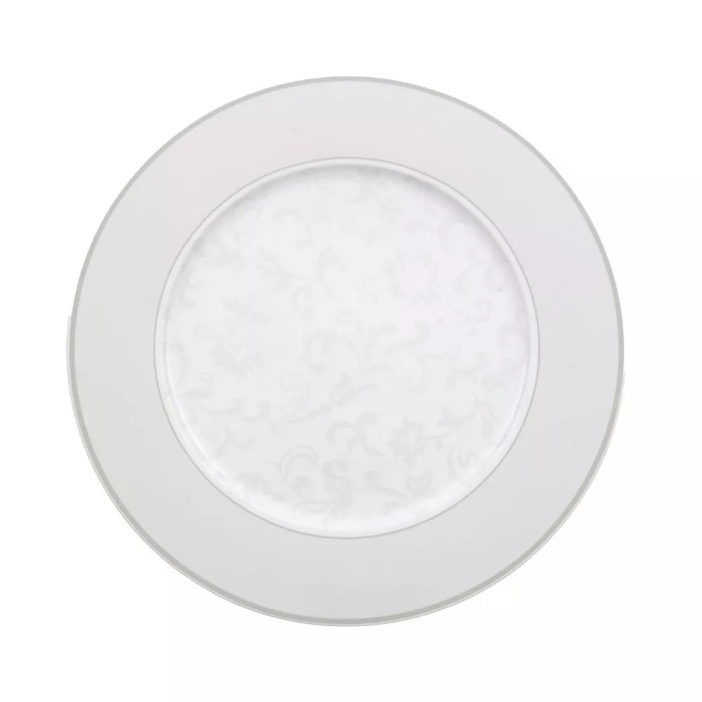 The charger plate from Villeroy & Boch's Gray Pearl collection brings elegance to your table. With its classic design and delicate silver-gray decoration, this round plate enhances any table setting, making it perfect for any occasion. The embossed structure and silver-gray finish create a sophisticated and harmonious atmosphere. Ideal for formal dinners and special events.
