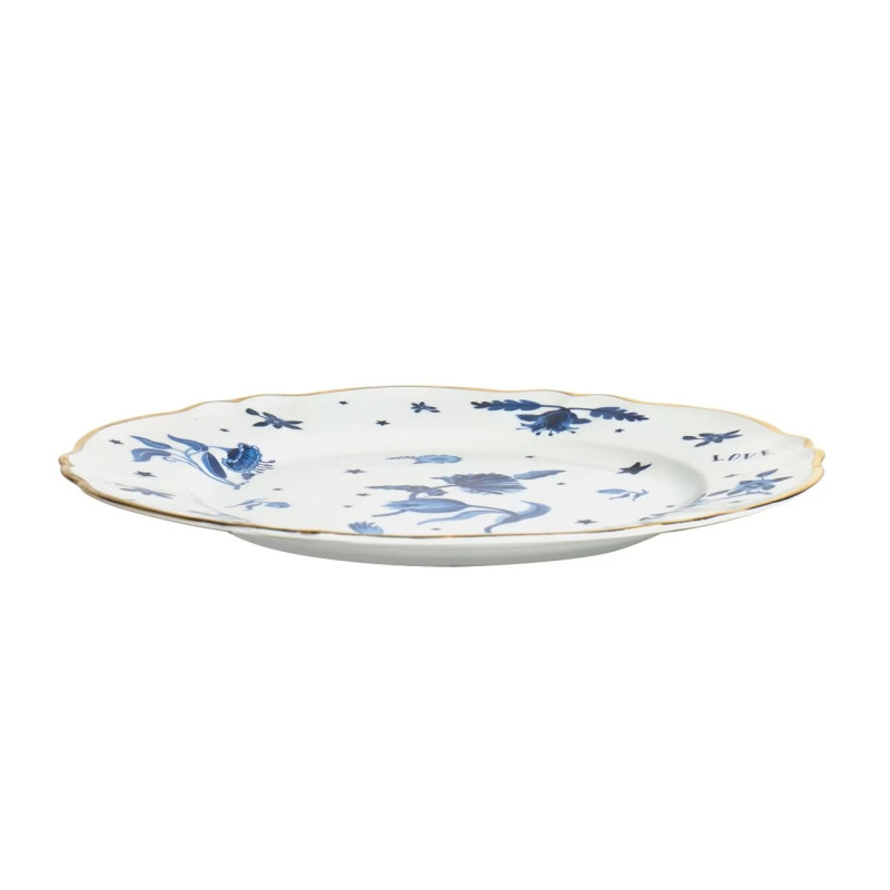 PLACEMAT 33 CM, BLUE FABULA GOLD RIM, FTB 97 - BITOSSI HOME The Bitossi Home Disassembled Table’s line of plates is a collection of informal and modern plates, perfect for creating original and creative compositions on the table. Made of high-quality ceramic, the range of colors change a lot. The plates are available in different sizes and shapes, from classic ones suitable for main courses to smaller and original ones, perfect for presenting appetizers or desserts. Thanks to their versatility, the Bitossi Home Disassembled Table’s line of plates is suitable for any occasion, from everyday lunch to dinner with friends, and allows you to create a different and captivating table every time. SKU: FTB-97 Diameter: 32.5cm Line: The Disassembled Table Material: Porcelain with gold rim Washable up to a maximum of 250 dishwasher cycles Do not use in the microwave
