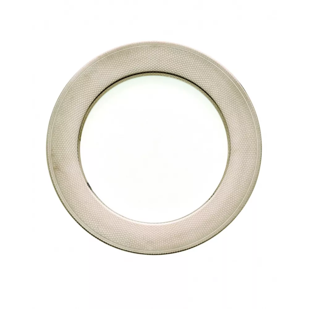 Set a refined and sumptuous table with the Limoges porcelain Guilloché charger. The platinum presentation plate goes under other plates for added pop. MATERIAL • Porcelain DIMENSIONS: 29,5 cm