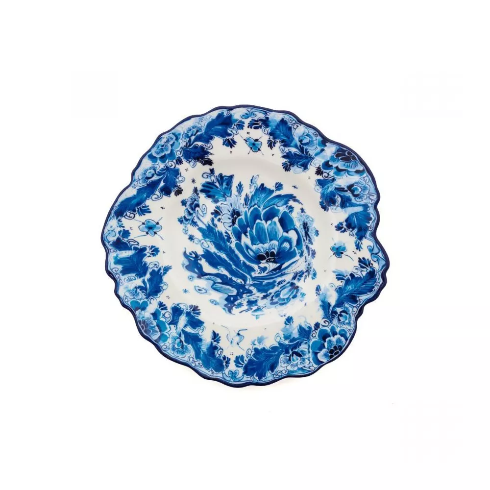 FRUIT PLATE 21 CM, DELFT ROSE, 11235 - SELETTI The Classics on Acid fruit plate is a dish decorated with a Rose designed with Delft style, that has a classic look but with a surprising element for party-goers and eclectic individuals. These plates can be used as wall decorations or as part of table settings. Traditional shapes and designs from different eras and cultures have intentionally been distorted, making them a perfect addition for any special occasion. The Italian brand Seletti takes us to an unconventional universe with Figurative and Pop Art design, where creativity is the watchword. Material: porcelain Dimensions: Diameter 21 cm Design: Diesel living with Seletti