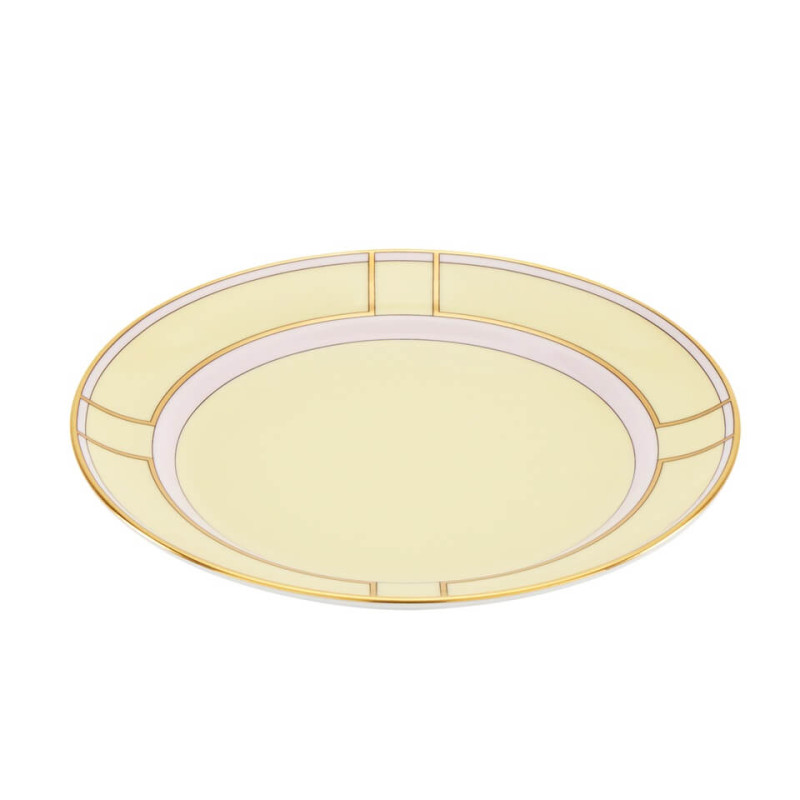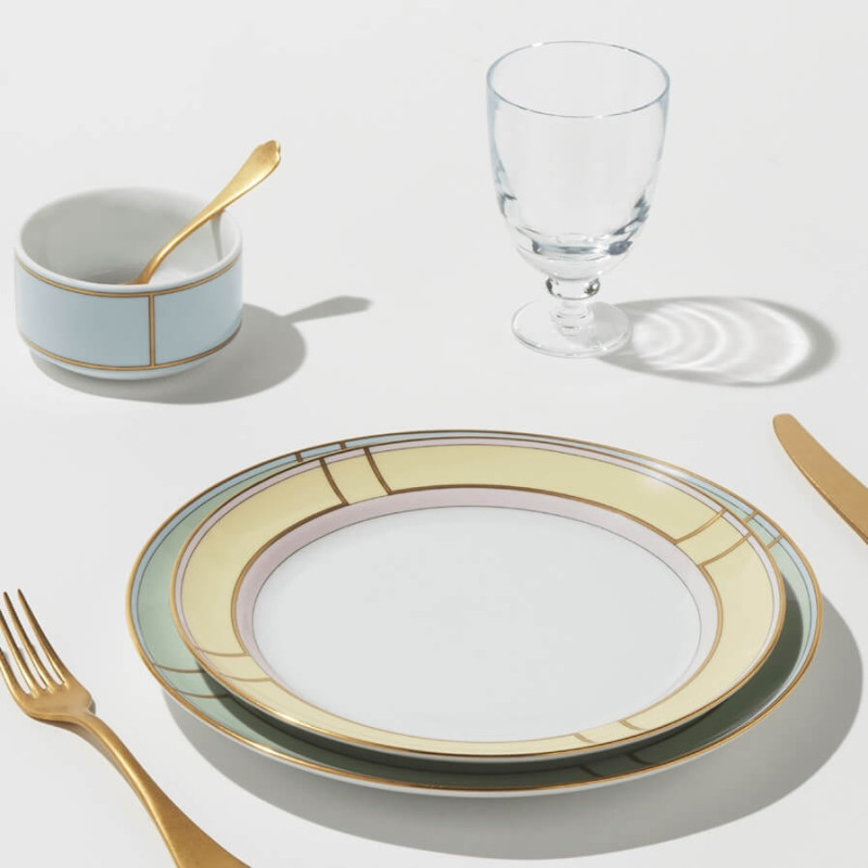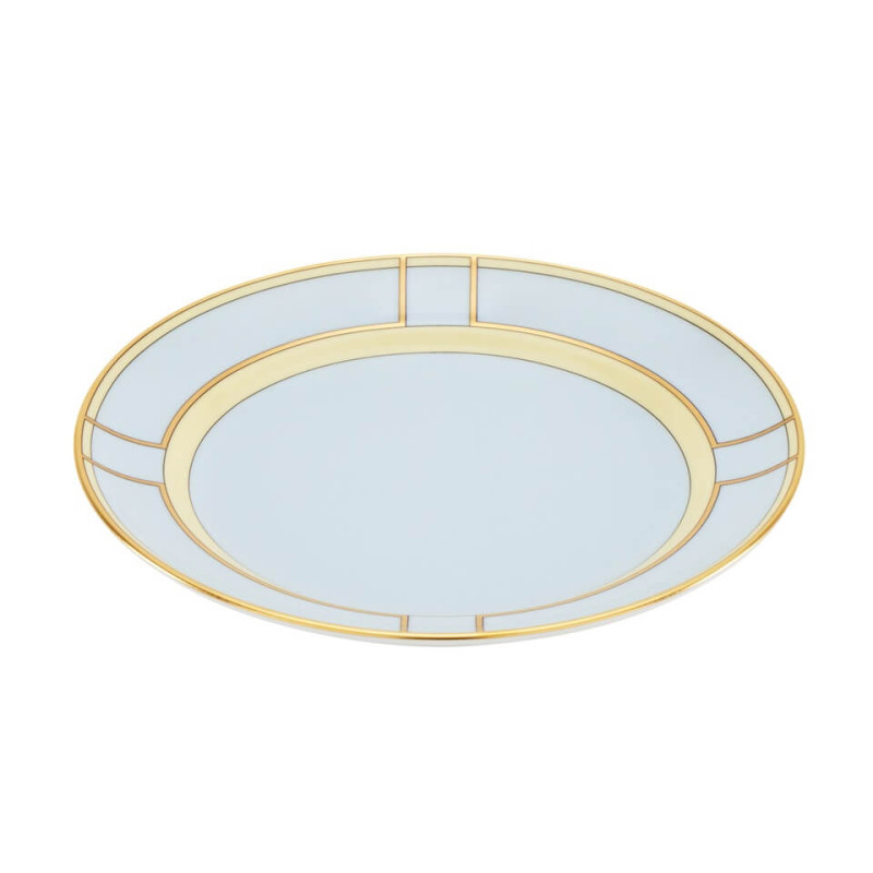 Discover Diva, the collection by Richard Ginori that celebrates Italian design with a contemporary touch, revisiting the iconic style of Giovanni Gariboldi. It features four unexpected decorations in pastel shades—Sky Blue, Yellow, Pink, and Green—enhanced with delicate golden lines that accentuate its minimalist shapes. The versatility and dynamism of this collection are perfectly suited for everyday use, offering innovative and original combinations: the sugar bowl with lid transforms into a small bowl with saucer, while the salad bowl can also function as a soup bowl with the addition of its tray as a lid. The bread plates, perfect for serving small sweets, are the ideal companion for the tea ritual. This collection not only meets daily needs but also adds a touch of luxury and design to your table, available in various table, tea, and coffee configurations and enriched by a dedicated giftware line. Watch the video:Diva by Ginori Technical specifications: Material: Porcelain. Not suitable for the microwave; dishwasher safe on a gentle cycle (max 50°C) Dimensions: Height 2.4 cm, diameter 20 cm Weight: 366 g Functionality: Stackable product for easy storage