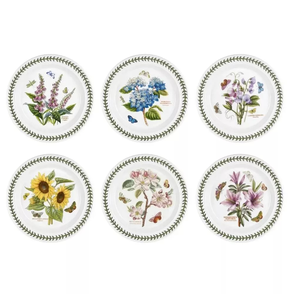 The Botanic Garden 20 cm Plate Set comprises six dessert plates featuring beautiful floral motifs and butterflies. These durable yet stylish plates make everyday occasions special by bringing enjoyment into our busy modern-day lifestyles. These versatile plates are part of the Botanic Garden collection, one of the most recognizable collections in British ceramics, and are made to meet the demands of the busy family kitchen. Flowers may differ from the image shown. Product code: BG05072 Country of manufacture: United Kingdom Material: Earthenware Width: 20 cm Brand: Portmeirion Number of pieces: 6 Made in the factory in England, each piece is crafted for modern living and dining and is of the utmost quality.