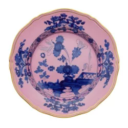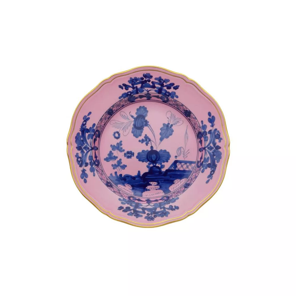 The Oriente Italiano collection by Ginori creates a lush, vibrant garden of exotic flowers, offering an exuberant and unusual feast for the eyes. Combining two elements of Italian artistic tradition: the elegance of the Antico Doccia Ginori collection lines and the delicate charm of the Garofano, a typical floral motif found in Faenza ceramics inspired by an imaginary oriental garden, this plate bursts with vibrant colors, bringing life to any table setting.