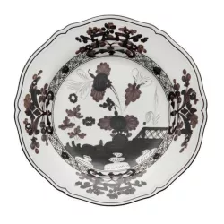 The Oriente Italiano collection by Ginori creates a lush, vibrant garden of exotic flowers, offering an exuberant and unusual feast for the eyes. Combining two elements of Italian artistic tradition: the elegance of the Antico Doccia Ginori collection lines and the delicate charm of the Garofano, a typical floral motif found in Faenza ceramics inspired by an imaginary oriental garden, this plate bursts with vibrant colors, bringing life to any table setting.