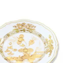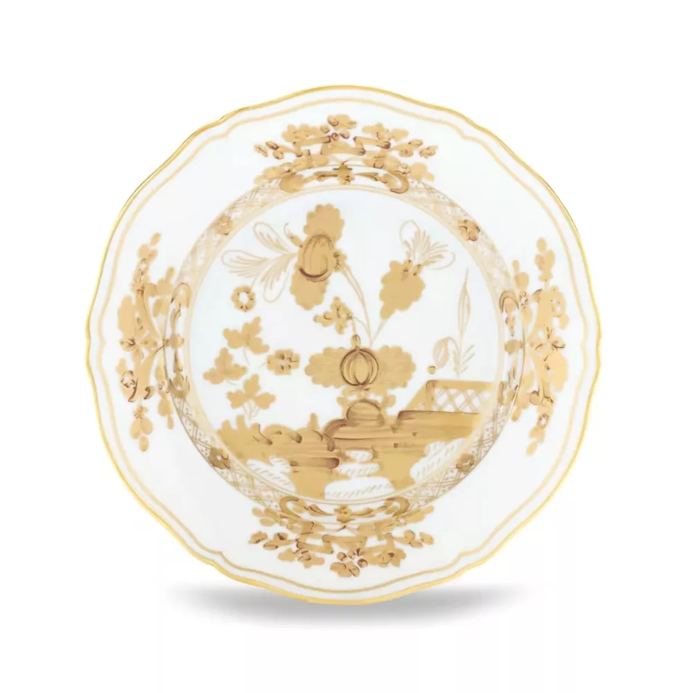 The Oriente Italiano collection by Ginori creates a lush, vibrant garden of exotic flowers, offering an exuberant and unusual feast for the eyes. Combining two elements of Italian artistic tradition: the elegance of the Antico Doccia Ginori collection lines and the delicate charm of the Garofano, a typical floral motif found in Faenza ceramics inspired by an imaginary oriental garden, this plate bursts with vibrant colors, bringing life to any table setting.