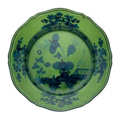 The Oriente Italiano collection by Ginori creates a lush, vibrant garden of exotic flowers, offering an exuberant and unusual feast for the eyes. Combining two elements of Italian artistic tradition: the elegance of the Antico Doccia Ginori collection lines and the delicate charm of the Garofano, a typical floral motif found in Faenza ceramics inspired by an imaginary oriental garden, this plate bursts with vibrant colors, bringing life to any table setting.