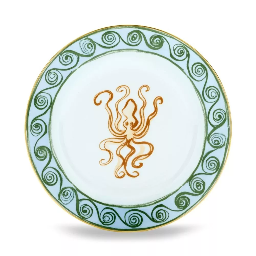 This porcelain dessert plate is graced with Terracotta, sky blue, or rock orange tones and finished with pure gold threading. At its center, a marine octopus adds a touch of myth and fantasy, echoing the surreal storytelling of Il Viaggio di Nettuno. Ideal for serving desserts, ice cream, or fruit, it’s a refined objet d’art that elevates any table setting, transforming each moment into a poetic experience. A collector’s piece from the visionary mind of Luke Edward Hall.