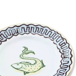 This porcelain dessert plate is graced with Terracotta, sky blue, or rock orange tones and finished with pure gold threading. At its center, a marine octopus adds a touch of myth and fantasy, echoing the surreal storytelling of Il Viaggio di Nettuno. Ideal for serving desserts, ice cream, or fruit, it’s a refined objet d’art that elevates any table setting, transforming each moment into a poetic experience. A collector’s piece from the visionary mind of Luke Edward Hall.