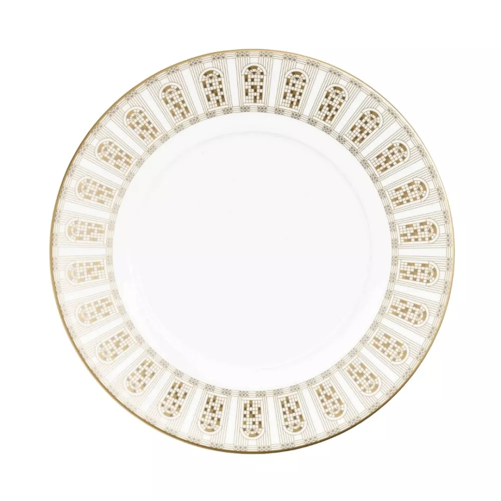 The Arcadia Gold and Platinum dessert plate set of 2 2817041 by Baccarat celebrates the elegance of fine tableware with luminous sophistication. Crafted from porcelain, these plates feature brilliant white surfaces enhanced by delicate decorations in gold and platinum, meticulously applied with exceptional craftsmanship. The Arcadia motif is inspired by the arched windows of the Baccarat Manufacture, paying tribute to the place where passionate artisans have created extraordinary masterpieces for generations. Perfect for refined table settings and beautifully paired with Baccarat crystal creations, they also make a prestigious gift idea for moments of celebration and sharing.