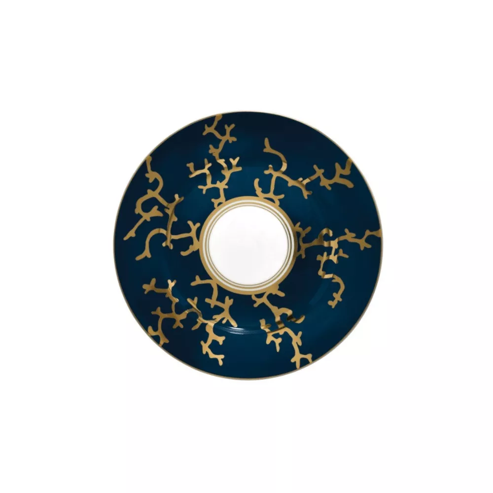 Designed by Alberto Pinto for Raynaud. Cristobal is a dish served with a saturated and opulent design touches that characterize a unique and impactful elegance as a hallmark of this talented decorator. A set available in coral, turquoise and navy for an original and elegant table. Design : Alberto Pinto Reference : 0099-17-101022 Diameter : 22 cm Material : Porcelain Motive : n.1 Hand wash recommended