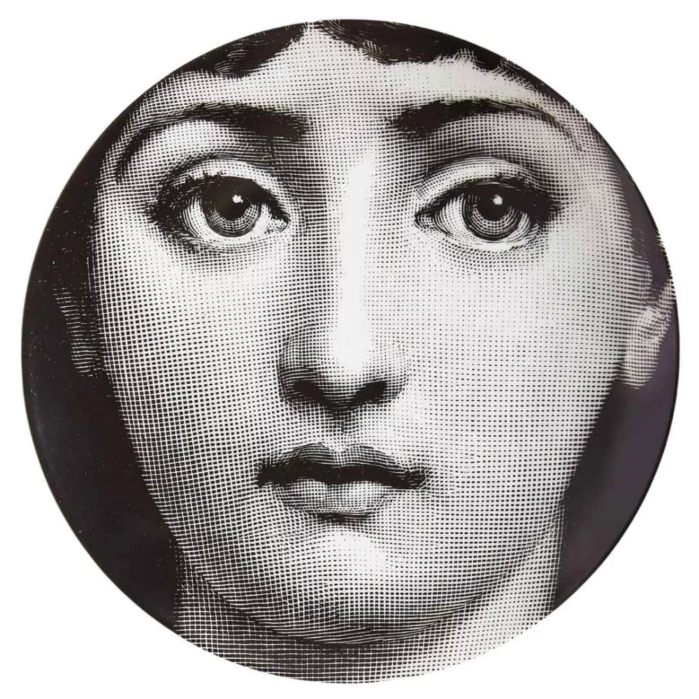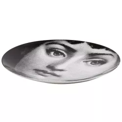 Il volto della cantante lirica Lina Cavalieri, musa di Piero Fornasetti, impreziosisce questo piatto decorativo in porcellana, primo decoro della celebre collezione Tema e Variazioni. Un autentico pezzo da collezione, pensato per essere esibito singolarmente o in composizioni creative con altri piatti della serie. Decorato a mano, può essere utilizzato come centrotavola ornamentale o come piatto da parete, grazie ai fori predisposti sul retro. Ogni minima differenza tra creazioni analoghe riflette la realizzazione artigianale che rende unico ogni esemplare.