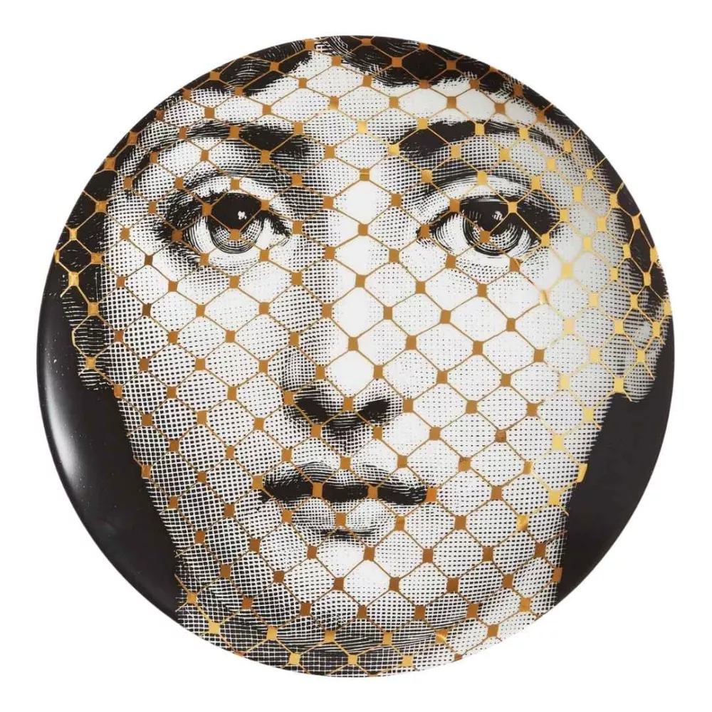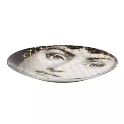 The Tema e Variazioni n.78 plate by Fornasetti showcases the unmistakable features of Lina Cavalieri, playfully reinterpreted within one of the most iconic series of the Milanese Atelier. Crafted in hand decorated porcelain with refined gold accents, this collectible piece blends art and design in a timeless balance. Designed to be displayed as a wall plate thanks to the two holes on the back or used as an ornamental accent for the table, it stands as a true symbol of the Fornasetti universe. Any slight differences between similar creations are the result of artisanal craftsmanship and confirm the uniqueness of each piece.
