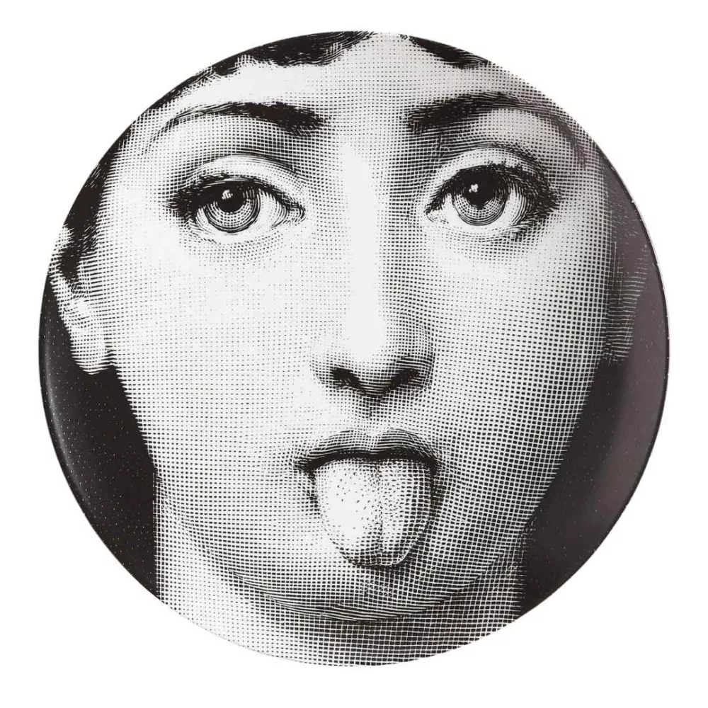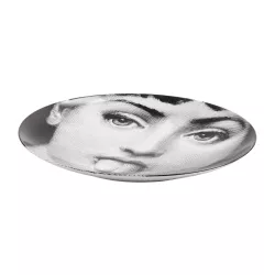 The Tema e Variazioni n.82 plate by Fornasetti features the iconic face of Lina Cavalieri, endlessly reinterpreted by Piero Fornasetti and transformed into one of the most celebrated series in Italian design. Crafted in porcelain and hand decorated, this collectible piece belongs to the renowned Tema e Variazioni collection, blending art, wit and elegance. It can be displayed as a wall plate thanks to the two holes on the back or used as an ornamental accent for the table. Any slight differences between similar creations are the result of artisanal craftsmanship and confirm the uniqueness of each piece.