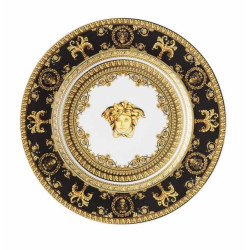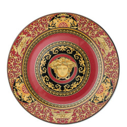 This fine Versace pattern is called Medusa Gala. It is produced using the finest porcelain creating a style that is best described as luxurious and glamorous. The most prominent color of this item is gold. Lavish ornaments decorate this piece and make it a 'must have' for everyone in love with opulent design.Dishwasher suitable.The service can be washed in the dishwasher economy cycle (55 degrees C). Please pay particular attention to the instructions of the dishwasher and detergent manufacturers on the suitability of their products. Dimensions: 30 cm