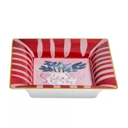 In the Con Amore collection, Bitossi Home celebrates love and positivity with the artistic vision of Chiara Perano. This porcelain trinket dish features a charming blue flowers decal on a red and white background, adding a poetic touch to any space.