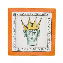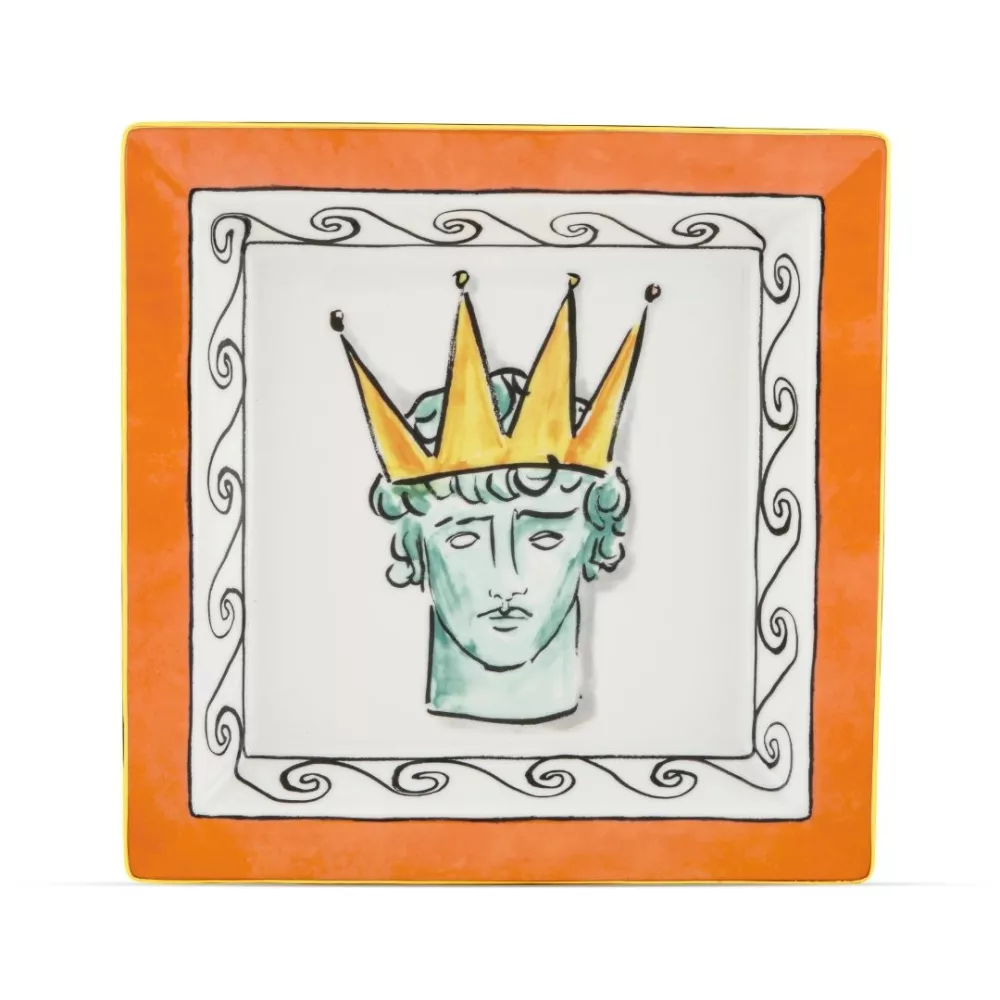 A modern take on classical mythology, this porcelain catchall is adorned with an intense red Greek motif framing the youthful figure of Neptune, ruler of the seas. Designed by Luke Edward Hall, the piece is illuminated by pure gold threading, giving it a refined and luminous finish. Ideal as a statement piece on a console or dining table, this bold design brings together ancient legends and contemporary charm.