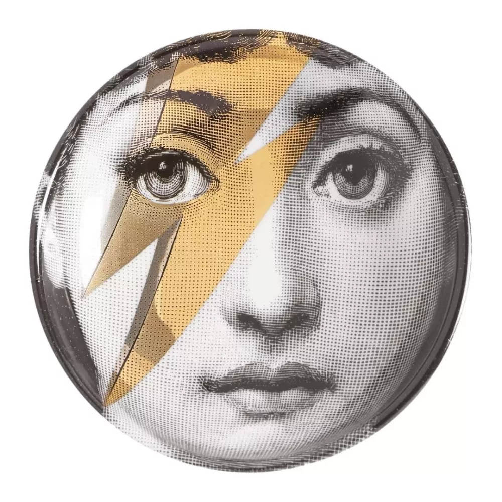 Elegant and iconic, this hand-decorated porcelain ashtray is part of the renowned Tema e Variazioni series, in which Fornasetti reimagines the face of opera singer Lina Cavalieri. Enhanced with refined gold details, it is a true collector’s piece that blends art and functionality, adding an exclusive accent to any setting.