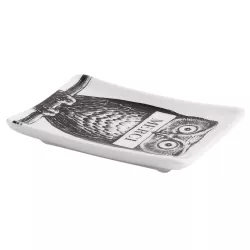 A symbol of wisdom and foresight, the owl has always inspired Fornasetti’s creativity. In this elegant hand-decorated, rectangular-shaped porcelain ashtray, it takes center stage. Each slight variation results from artisanal craftsmanship, highlighting the uniqueness of every piece.