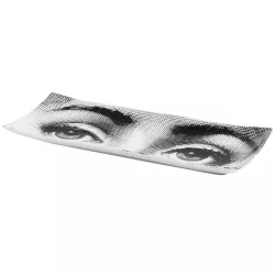 The magnetic gaze of Lina Cavalieri watches from this Fornasetti porcelain tray, meticulously hand-decorated with artisanal precision. With its flat shape, it recalls the lightness of a sheet of paper, serving as the perfect canvas for the Atelier’s endless variety of decorations. Each slight variation emphasizes authenticity, making every creation a unique piece.